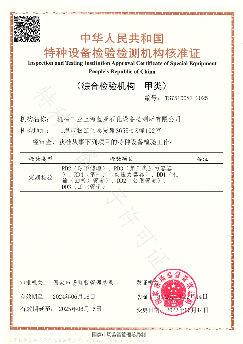 機(jī)械工業(yè)上海藍(lán)亞石化設(shè)備檢測(cè)所有限公司